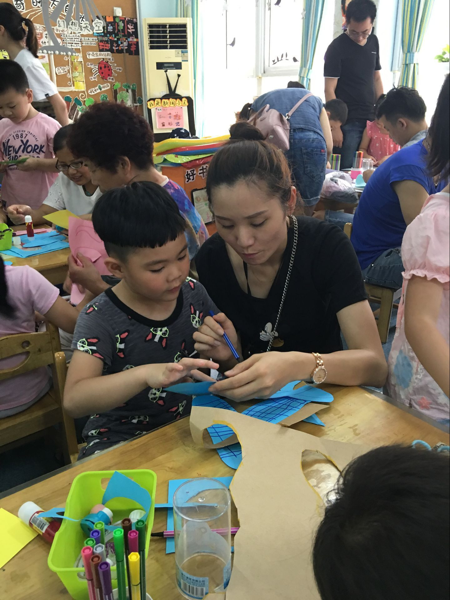 你瞧,浙大百合花幼儿园中一班的宝贝们正在和爸爸妈妈一起制作着属于自己独一无二的时尚凉拖呢!先做鞋底,再设计自我风格的鞋面,黏贴、制作……大朋友们小朋友们都忙得不亦乐乎。有独属男孩风格的酷炫凉拖,有精致亮丽小女生十足的夏威夷风凉拖等等,每一双凉拖可都是限量独版。