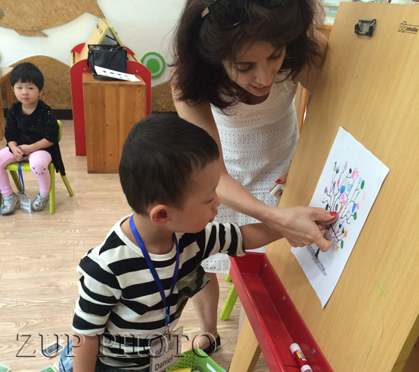 实验园星星班的孩子们升入小班啦,变成了能干的小哥哥小姐姐,我们要开始学习一项新的本领——English。9月21日,首次与英语接触,孩子们稍稍有点紧张,有点腼腆,但是看到美丽又亲切的Osydey老师对着我们笑眯眯地打招呼,大家渐渐轻松起来,不由自主回应着“Holle”,再跟老师握握手,介绍一下自己,紧张的情绪一扫而空。熟悉起来的我们,在Osydey老师的带领下,用我们的小手指共同完成了一颗友谊之树。