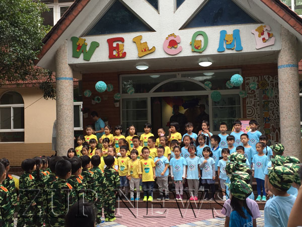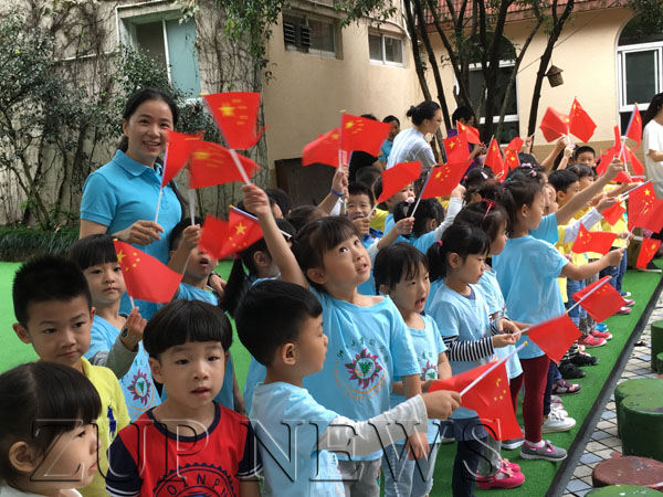 活动开始,孩子们身穿迷彩服,个个身姿挺拔,像小小解放军一样,为祖国妈妈献上了歌曲合唱《国旗红红的哩》、《大中国》,孩子们真诚而又稚嫩的歌声,传递着对祖国深深的祝福。现场的小观众和家长们纷纷挥舞手中的国旗,活动现场气氛高涨。接着,解放军叔叔现场举行了升旗仪式,包括:出旗、升旗、奏唱国歌。看着解放军叔叔迈着铿锵有力的步伐,庄严地将国旗缓缓升起,孩子们的神情也变得严肃庄重。有的孩子情不自禁地学起解放军叔叔,敬重地向国旗敬礼。“祝祖国妈妈生日快乐!”孩子们纷纷大声喊出对祖国妈妈深深的祝福。