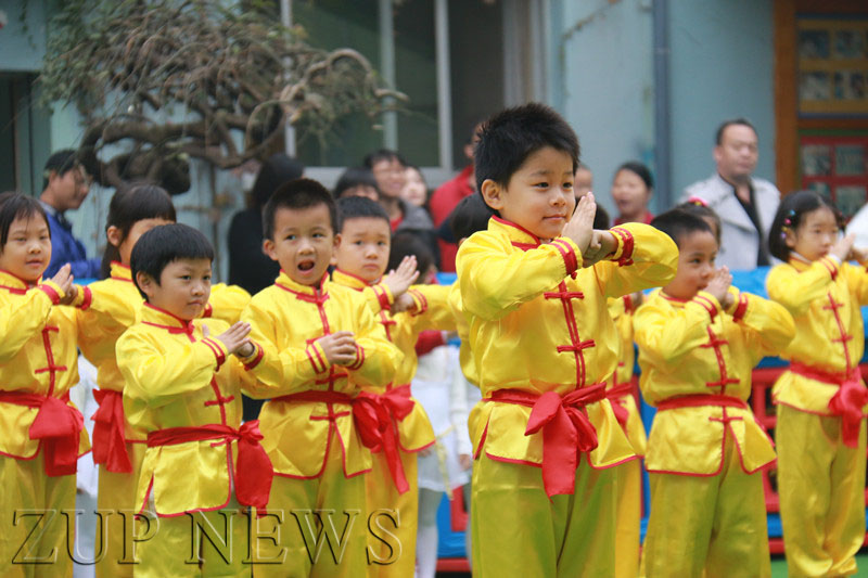 运动会开幕式由大班组开展,首先向我们走来的是幼儿方阵队。身穿红色运动服,手拿亮蓝彩球的拉拉队队员们率先出场,跑跳、转身、下腰……十八般武艺齐上阵,轻巧地舞动着;“卧似一张弓,站似一棵松,不动不摇坐如钟,走路一阵风……”,中国功夫博大精深,小朋友们也不甘示弱,一出拳、一提腿,精神气十足,俨然是一个个小小武术家!