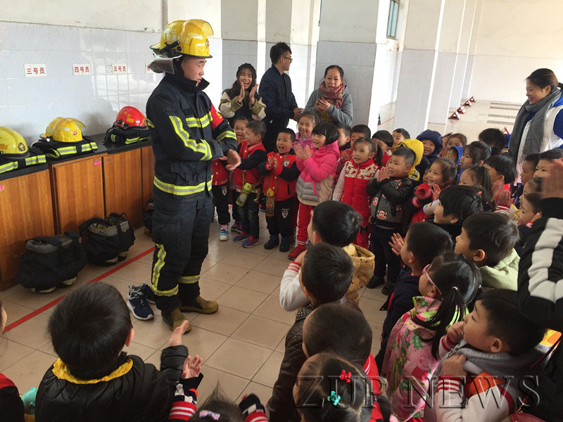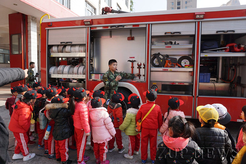 活动中,消防员叔叔用生动而又专业的术语向小朋友们介绍了消防车辆和一些随车器材装备,并现场演示了消防器材的操作使用方法。孩子们还饶有兴趣地观看了消防员叔叔户外队列练习、接水管、高压水枪、登云梯等专业技能表演,孩子们为消防员叔叔精湛的攀爬技巧和勇敢精神欢呼喝彩。