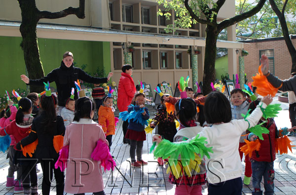 托班的宝贝们在老师的帮助下用他们稚嫩的小手掌,印出了可爱的小火鸡雏形,再由教师添画上小鸡嘴和小鸡爪,一只只活泼可爱的小火鸡就跃然纸上啦;小班的弟弟妹妹们动手又动脑,他们颇具创意地用纸袋、羽毛、气球等工具制作出了呆萌小火鸡;中班的老师们充分运用家长资源,有热心的家长助教和孩子一起过感恩节,还有酷帅的外教来给孩子们讲感恩的故事,孩子们戴上五颜六色的Turkey wings,装扮成小火鸡,一起跳起了火鸡舞;大班的孩子是幼儿园里最大的哥哥姐姐,他们会做的事可多了,他们在家里用实际行动表达了自己的感恩之心!瞧,一位男孩在家里帮妈妈扫地呢,这个小女孩在洗碗呢,他在自己洗衣服呢……
