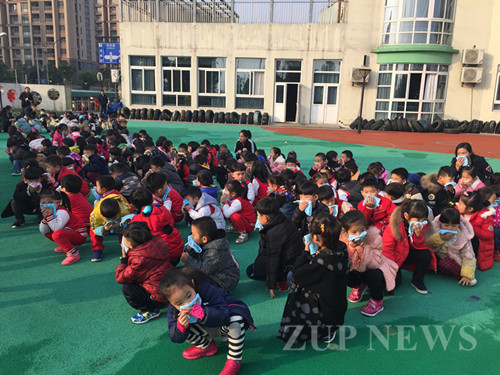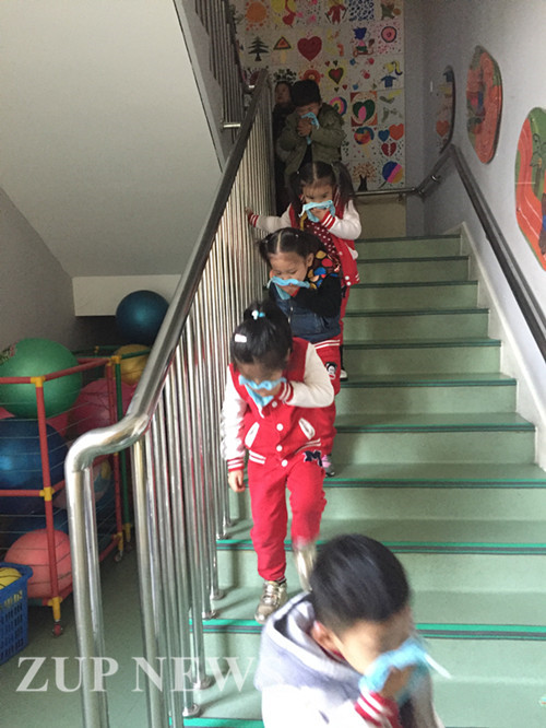 伴随着急促的警报声响起,演练正式开始。各班幼儿在老师的组织下,用湿毛巾捂住口鼻,弯着腰,手扶楼梯栏杆,按本班疏散路线迅速且有序地撤离到操场。3分钟内全体师生安全撤离。各班迅速整队,教师清点人数后向总指挥王文超老师汇报。王老师及时总结,向全体师生介绍了防火的具体措施及自救知识。