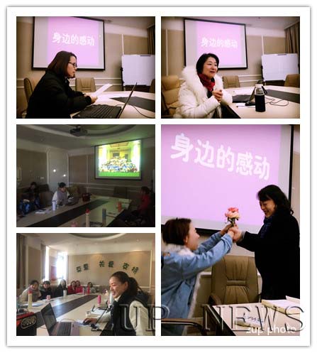 活动前每位老师都在年级组内分享了身边的感动故事,之后推选出四名老师代表,向全体老师分享自己的感动故事。有的老师运用简笔画的形式讲述了保育老师在保育工作中的细致入微;有的老师运用照片与文字相结合的形式记录了尚老师与孩子们的青春活力;有的老师分别采用照片、视频的形式讲述了老教师对她们工作上的帮助、教导以及生活中的点滴关怀;有的老师还用鲜花表达对恩师的感谢;有的老师用文字记录了刘老师严谨的工作态度以及深刻的教学理念;还有的老师制作了手绘海报,向大家分享了自己的搭班老师,讲述了配班与主班之间默契的配合。