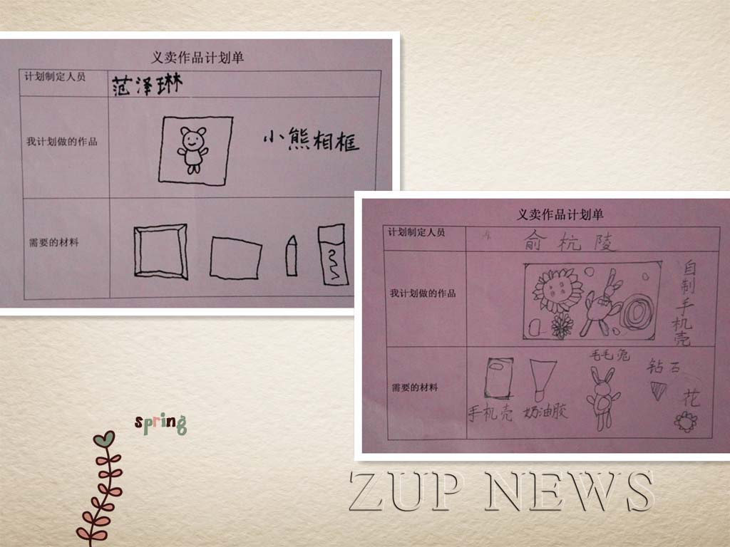 此次活动并不是通过一个活动来完成的,而是从计划到制作到义卖都是由幼儿自己来完成,逐步推进的系列活动。12月12日,大班的幼儿开始为“爱撒冬阳义卖活动”制作计划单,他们在老师和家长的带领下,用图文并茂的形式设计着属于他们自己的义卖计划单。瞧,孩子们多认真啊!经过几天的时间,一份份计划单就新鲜出炉了。紧接着,孩子们就开始拿着计划单进入了材料收集的阶段。在这个收集的过程中,因为作品都是不同的,需要用到的材料也都是五花八门,孩子们充分利用了家长的资源,邀请爸爸妈妈们一起收集材料,2天下来,所有的材料都收集完毕了。