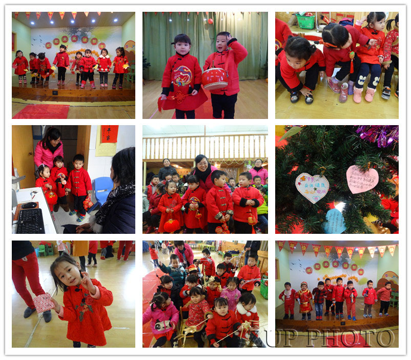 12月30日上午一大早,西溪分园里热闹非凡,原来是托班宝宝们个个身着喜庆的红色唐装在给大家送新年的祝福啊!他们给幼儿园里的每个哥哥、姐姐们,还给每天辛苦工作的门卫叔叔、医生阿姨送去了新年的问候。不断有家长和老师给他们按下快门,看!他们一边双手作揖,一边腼腆地恭贺道 “新年快乐”、“恭喜发财”、“过新年啰”,给新的一年讨了个好彩头!