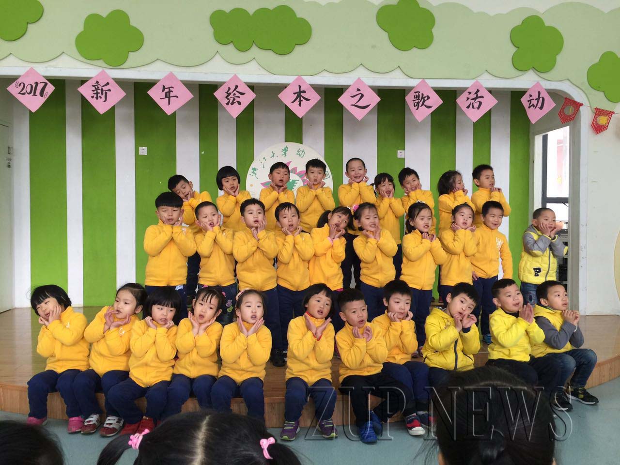 活动一共由“绘本之歌迎新”和“绘本卢浮宫”两部分组成。在绘本之歌迎新活动中,小朋友们开动智慧、改编歌词,用美妙的歌声表达了对绘本的喜爱,和对新年的祝愿。小班的小朋友们也在老师的指导下放声歌唱,千万别看他们小,小小的身体里可是蕴藏着大大的能量,嘹亮的歌声与清脆的嗓音,一点也不输哥哥姐姐们。而中大班的表演更是精彩,有歌还有舞,将全场的气氛调到了最高点,让大家目不转睛、叹为观止。