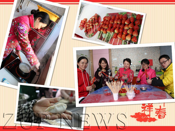 接下来,多才多艺的教师们纷纷献上自己的表演:鲍老师首先带来原创诗歌三句半,诙谐幽默的表演赢得大家的阵阵掌声;陈老师的一首美声《欢天喜地》应时应景;李老师的钢琴独奏《贝加尔湖畔》,旋律悠扬给人带来美的享受;两位年轻的王老师,一位现场挥墨书写对联,一位带来歌曲《我在春天等你》,为大家献上新春祝福;还有街舞《青春飞扬》,展示了我们实验团队的青春靓丽、神采飞扬!紧接着,好玩的游戏“水果蹲”“谎言大冒险”“歌曲接龙”“我说你猜”将晚会气氛推向高潮。欣赏了节目,再来尝尝美食吧!看,红彤彤的冰糖葫芦甜蜜可口,希望老师们的日子越来越红红火火!好吃的饺子象征着家庭和睦、团团圆圆。