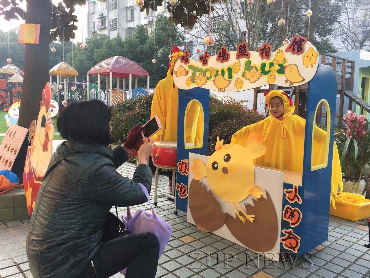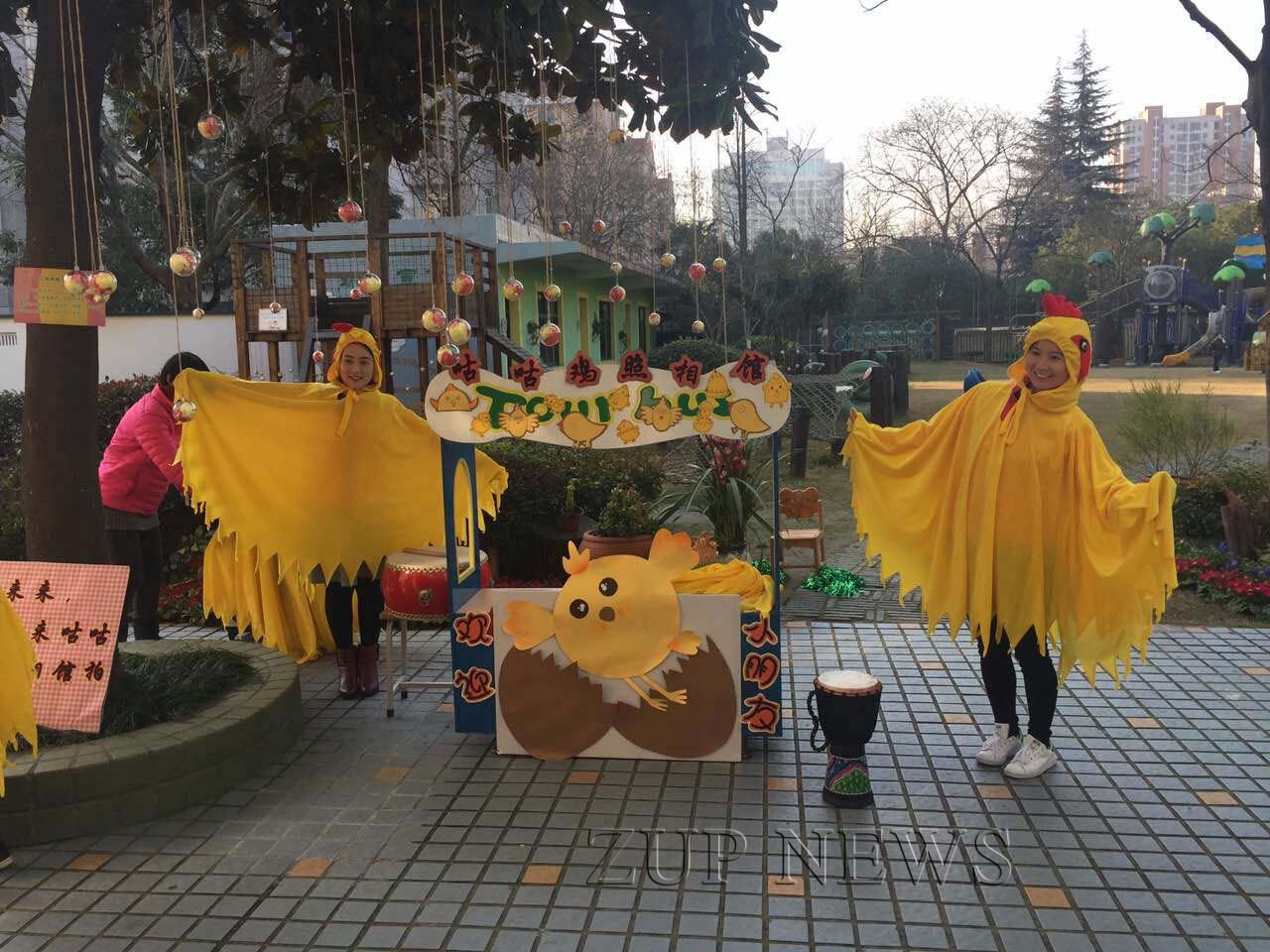 2月13日上午, 伴随着暖暖的阳光和动感的《咕叽咕叽》音乐,孩子们喜气洋洋的来到了幼儿园,印入眼帘的是门口的咕咕鸡照相馆,两位身穿鸡妈妈服装的老师热情地接待每一位到园的孩子,幼儿园为大家创设了多处拍照的景点和服装,孩子和家长们可以选择场景,留下珍贵的剪影。紧接着是满园满树的惊喜蛋宝宝,在老师的带领下,孩子们摘下了自己这份“特别”的新年礼物,一只绒绒鸡、一颗甜甜的糖、一句暖暖的祝福,承载的是每一位老师对孩子们的深深地祝福。