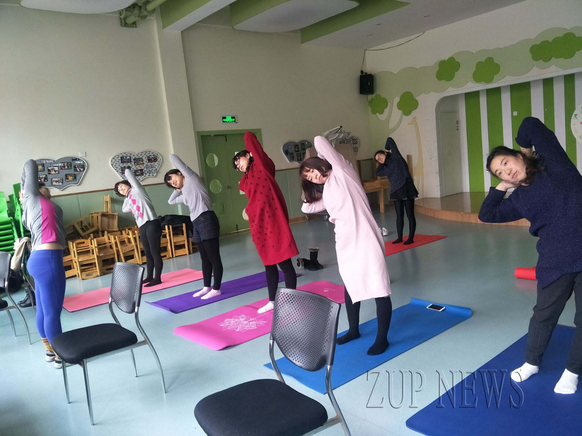 幼儿园老师是一个很平凡但又很神圣的职业,由于面对的3——6岁的儿童,很多时候都需要老师弯着腰跟孩子交流,所以也烙下了很多职业病,腰椎、颈椎、咽喉等等,都有不同程度的不适。因此,杭州市九欣幼儿园工会组织了全体教职工进行瑜伽学习,让老师们在工作之余调节体内环境、调理身体机能、增强体质。