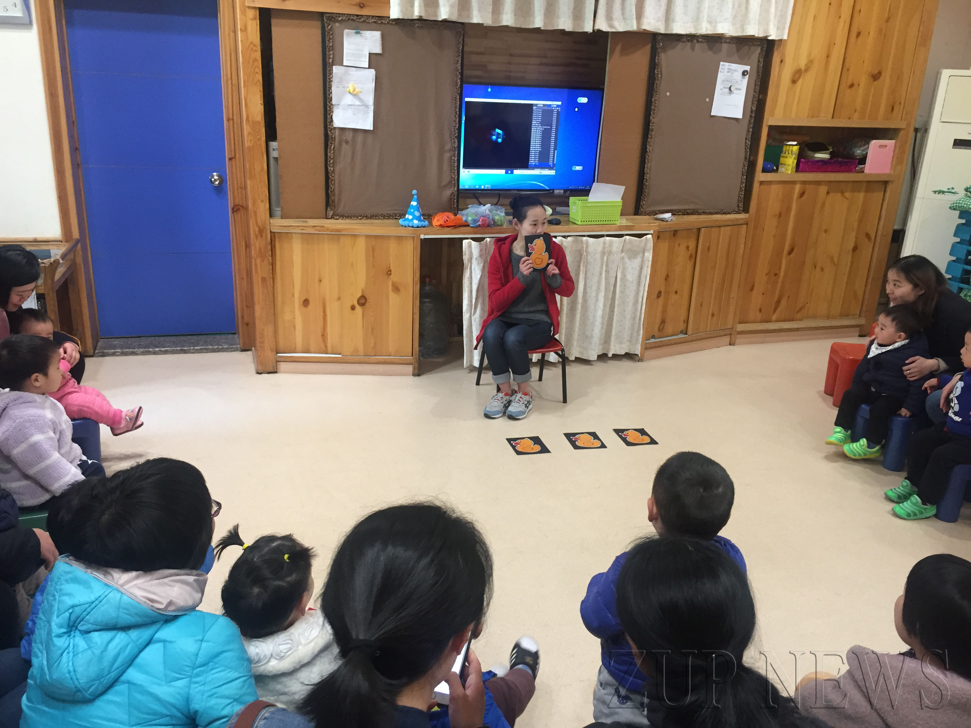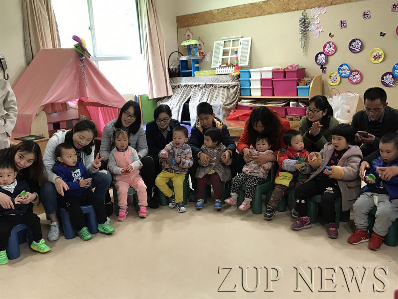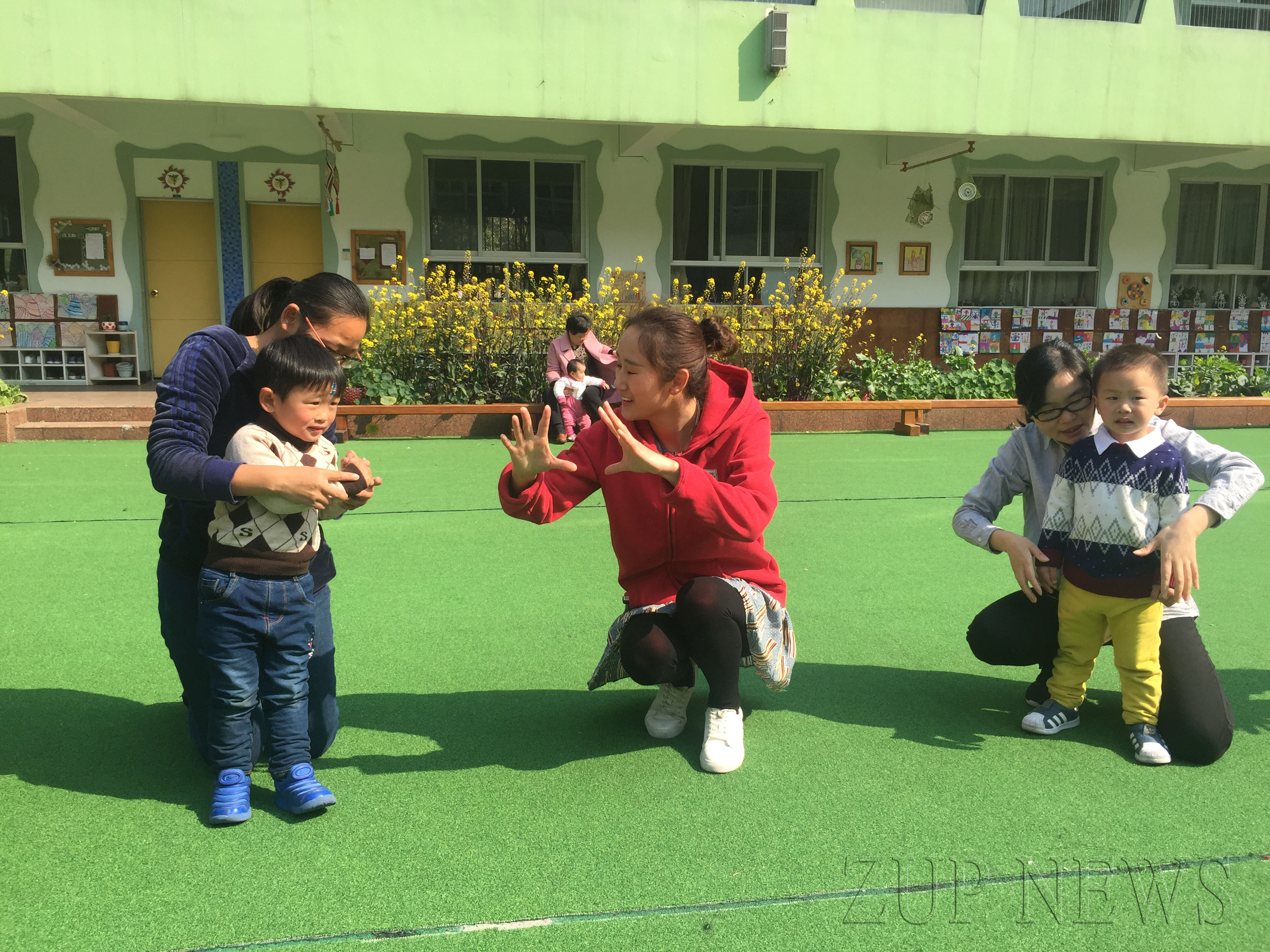 当天早上9点,家长和孩子们陆陆续续来到幼儿园,在老师的带领下来到玉泉分园小小二、小小三班教室,开始了快乐的体验课。郑晨老师带领小朋友们玩起了有趣的音乐游戏:五只小鸭去散步。小朋友们新奇地看着小鸭子图片随着“嘎嘎嘎”叫声次数的减少而一只只不见了,并且练习用手中的小响板来表现小鸭子的叫声,并跟着音乐唱唱跳跳。