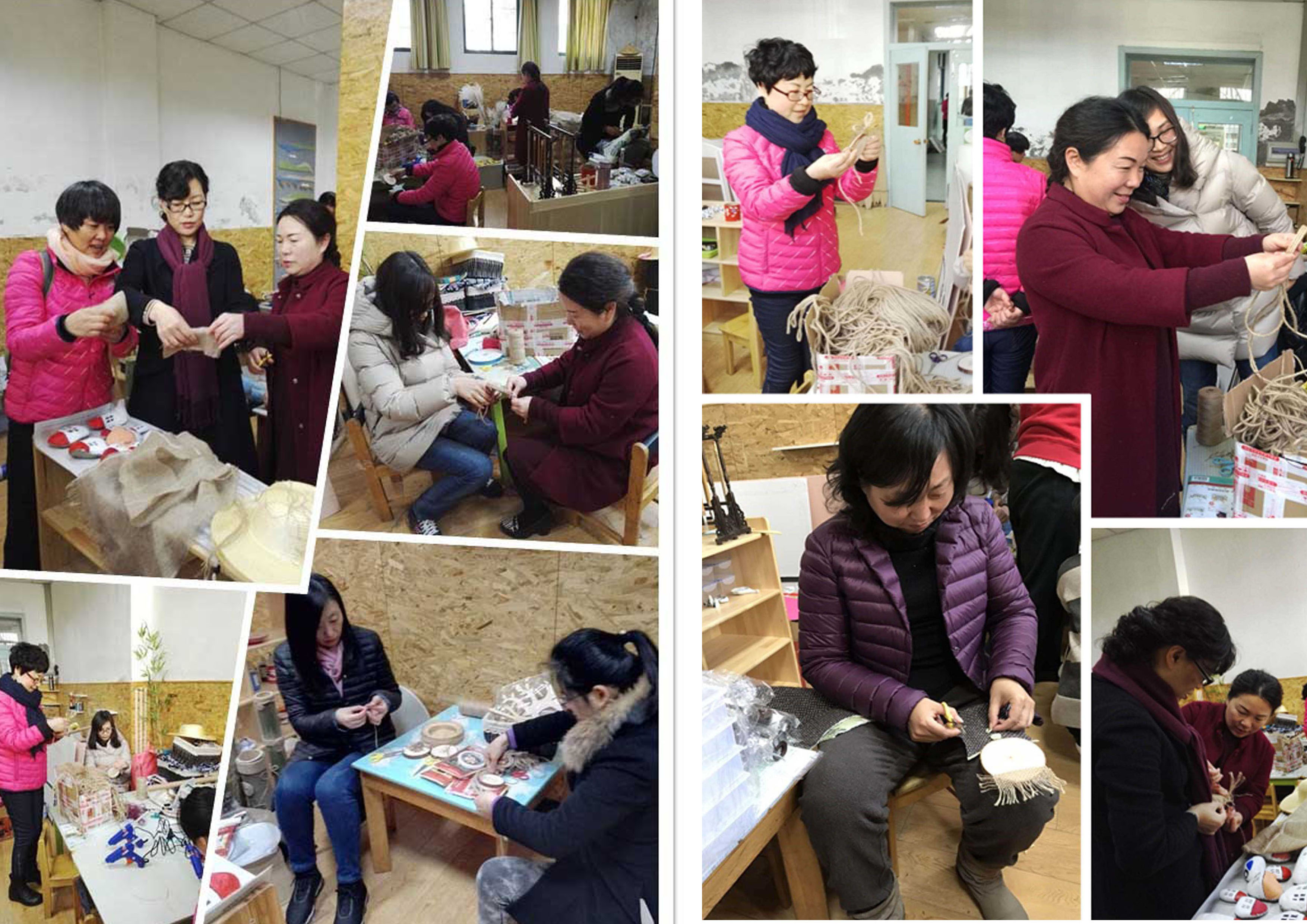 看这里,手中的材料在教师们创意构思下瞬间变成了一件件小小的艺术品。教师间相互讨论、集体构思,通过拼接、裁剪、穿插等形式,将木板、麻绳、彩纸等材料结合在一起,整个色彩的搭配和装饰运用的恰到好处,相得益彰。最后,在孩子们奇思妙想的创意画笔点缀下,一个个活灵活现的木质小人物展现在大家面前。