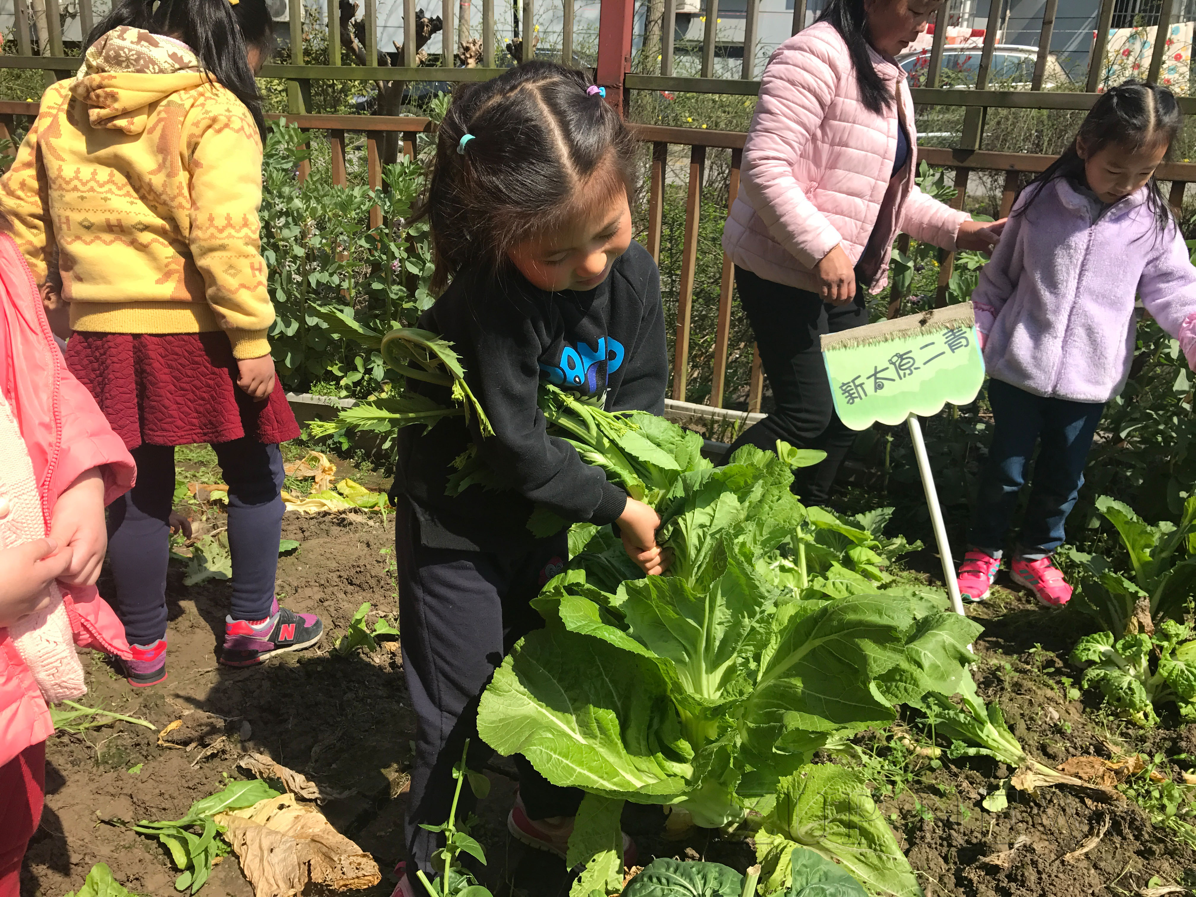 可别小看种菜、收菜这一过程,这里面收获的不仅是蔬菜,还培养了孩子们的观察能力、照料植物的责任心、热爱劳动和生活的情感,也让孩子在与人合作、互帮互助的过程中,体验到合作的力量、分享的快乐。