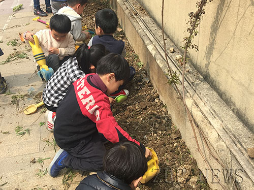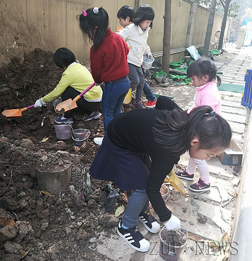 春天来了,万物生长,眼下正是播种的好时节。3月29日,大华幼儿园的小朋友们兴高采烈地走出教室,拿着小铲子、小桶来到园区大门边,今天他们要在这里开垦出一片新的种植区,为接下来的播种做准备。