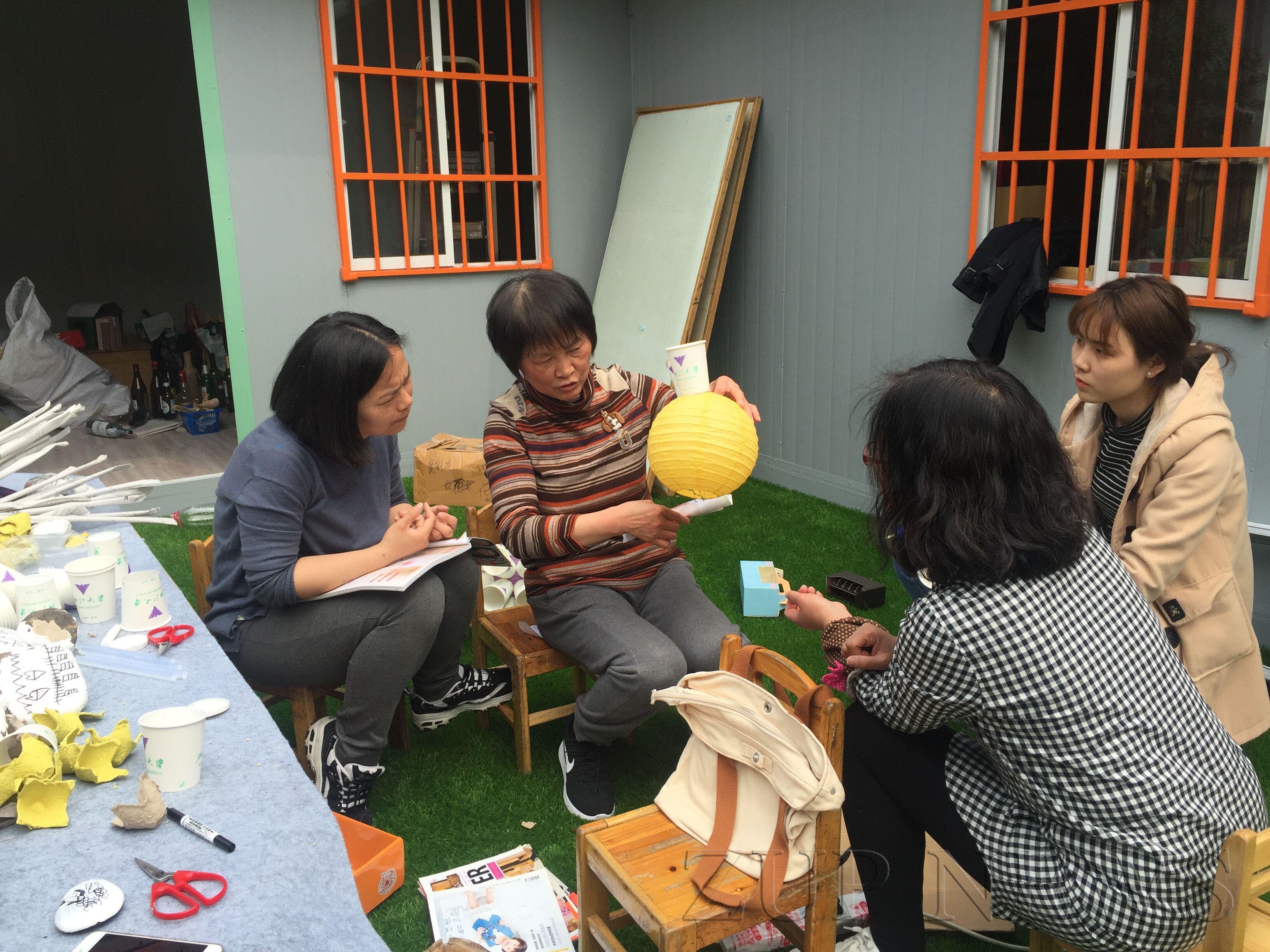 何老师一来到西溪分园就受到了中心、园区领导、教职工们的热烈欢迎。在参观完焕然一新的园区环境后,何老师表示十分惊喜。随后,何老师和青年教师们成群结伴,与她们细心畅谈,并结合自身几十年的工作经验,围绕园区环境创设、手工类创作方面与园区青年教师们相互交流。通过亲手制作实践,手把手的示范,让青年教师们在实践中学,在实践中进步。