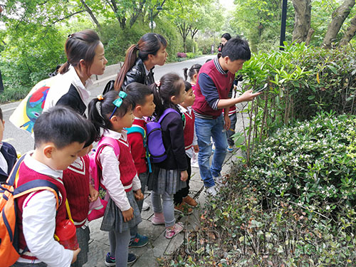 很快,我们的目的地到了,孩子们按秩序下车,来到西溪湿地北门集合。今天的天气十分舒适,西溪湿地里花红柳绿,草长莺飞,孩子们一边走,一边欣赏着美丽的景色。在尚老师的介绍下,他们认识了月季、四叶草、桂花树……还发现了各种美丽的鸟和在树枝间自由穿梭的松鼠,今天的收获真不少!