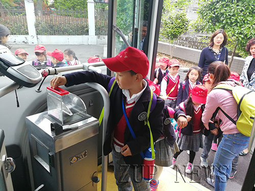 一大早,大班组的小朋友们背起小书包,排着队牵着手从幼儿园出发,走向我们的第一站:五常公交站。经过路口,小朋友们都知道:要等绿灯亮了才能过马路,一个个很自觉地在路边排队等候。来到公交站,在老师的指引下,孩子们找到了开往西溪湿地北门的130路公交车,排队上车后一个接一个把准备好的一元硬币投进投币箱,然后找到空位坐好,公交车载着一群欢快的孩子出发啦。