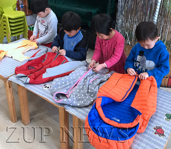 在生活中,孩子们常常会穿开衫、背心,拉拉链成为了孩子们的一件“难事”。老师们在鼓励孩子的基础上,将方法教给孩子:拉拉链时插进去的脚要插到底,才能往上拉。如果卡住了,不能使劲往上拉可以来回拉几下,或者拔出来重新开始。认真仔细、眼睛盯牢,拉拉链不再是困难!比一比、赛一赛,看,我们的小手不知不觉变得越来越能干了!