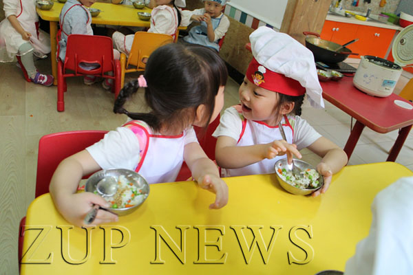 5月11日,孩子们穿起围裙,戴起厨师帽,体验当一回真正的小厨师!