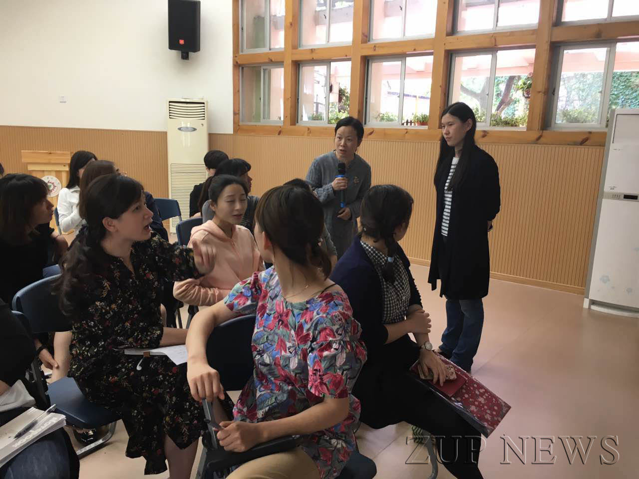 Lisa从目前美国的幼教理论基础、一日生活作息、课程设施、圆桌时间等方面来讲述,让我们清晰、全面地了解世界的教育主流:尊重儿童、关爱儿童、信任儿童永远是儿童教育的基点,只有在彼此尊重的基础上,教师的教育行为才有执行力。反之会干扰儿童及影响儿童的健康成长。老师们听得聚精会神,讲座后就幼儿园的区域设置进行了相互沟通,教师们各抒己见、畅所欲言,受益匪浅。