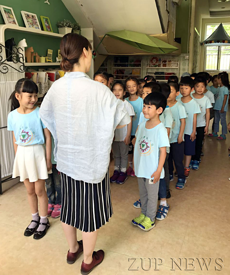 5月的周末,阳光明媚,夏虫嘶嘶鸣唱,清幽雅致的幼儿园内,充满了孩子们的欢声笑语。身穿浅蓝T恤衫的大孩子们热情地带领着满眼好奇的小小朋友们,参观幼儿园,手把手的教他们玩游戏。