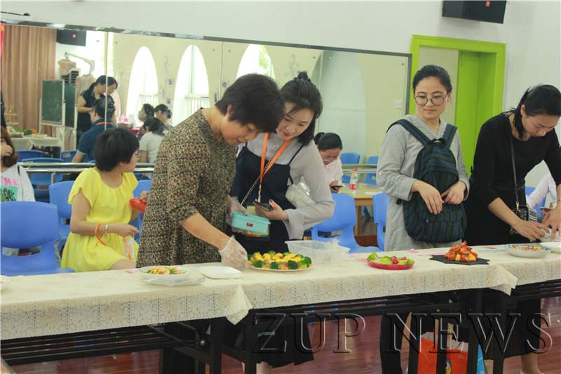 在记分环节,幼儿园金牌厨师也亲自出马,给在座的家长表演了雕刻,精致的刀工,赢得了在座领导、老师以及家长们的热烈掌声。