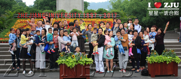 全家福留影的时间到了,既然宝贝们是“小模特”,家长就兼职一下“摄影师”吧!这时状况出现了:哭的、闹的、笑的、拉着爸妈不肯放手的,男孩们上窜下跳,女孩们东拉西扯,这边自顾自地在跳舞,那边抢了别人的气球,还有的骑着小车冲进队伍,现场乱成了一锅粥。终于,宝贝们的合照拍完了,接下来就是家长和孩子的大合照了,“各位家长抱好自家宝贝,大人和小孩一起合影吧!”在老师的帮助下现场总算得以控制,“摄影大师”们各显神通,有的指挥队形、有的安抚宝贝、有的赶紧抓拍,在所有家长和老师们的努力下,星星一班的浙大校庆全家福圆满拍成。