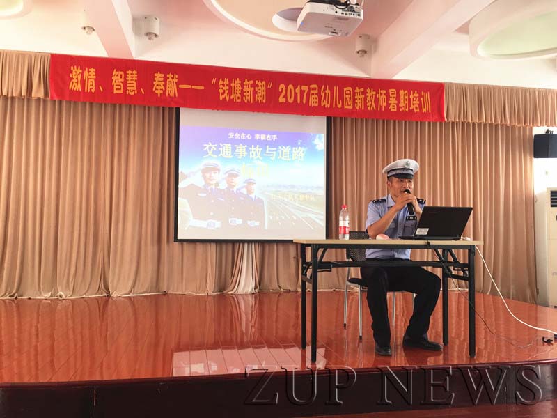 安全问题是幼儿园工作的重中之重,提高自救自护的素养和能力,培养教师们对交通事故防范和自我保护能力。2017年8月28日,杭州市百合花幼儿园特别邀请了九堡交警大队的余化成警官来园,为教师们开展“交通安全”知识培训。