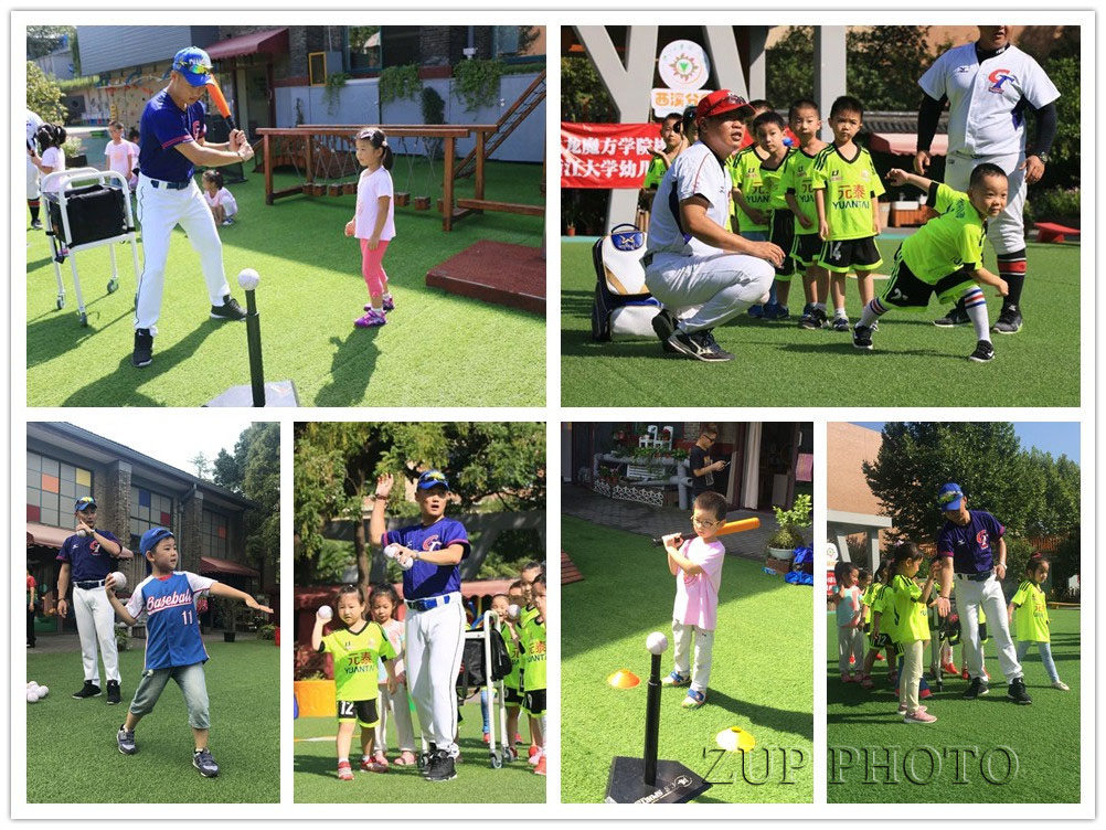 之前小朋友们对于棒球的初体验只是用纸棍打打纸球,今天我们有幸请到黄龙魔方学院的大哥哥们来教我们专业的棒球运动啦!棒球相对于孩子们来说,是个相对陌生的运动项目。黄龙魔方学院的哥哥们今天就将棒球带进了我们幼儿园,给从未接触过这项运动的小朋友们一次不一样的体验。来自台湾费雪的Jeff教练和吴教练根据孩子们的年龄特点为小朋友们量身定制了一次很棒的入门体验。小朋友们根据教练传授的姿势也是学的有模有样呢!调用全身的力气,控制球投出的方向,投的又远又准。棒球的击打不仅对击球的力度有很大的考验,还要手眼协调,控制棒球的运动轨迹,也是再次考验孩子们的空间感。