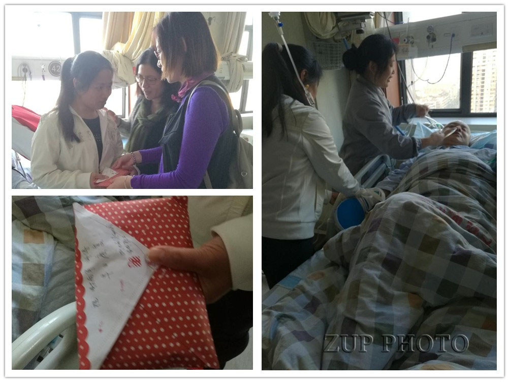 点点爱心,汇聚成河,无私助人,温暖真情。短短三天募捐,共募集到一万余元人民币。10月24日下午,由何晓勤园长,钱光丽副园长,蒋丽萍医生组成的慰问小组,亲入病房探望了谢师傅,并把爱心捐款送到了谢师傅家人的手里。