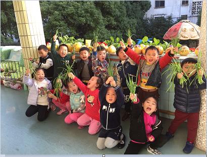 11月24日,华家池幼儿园中一班大蒜收割成功,孩子们握着自己种植的大蒜,喜笑颜开,享受着丰收的喜悦。