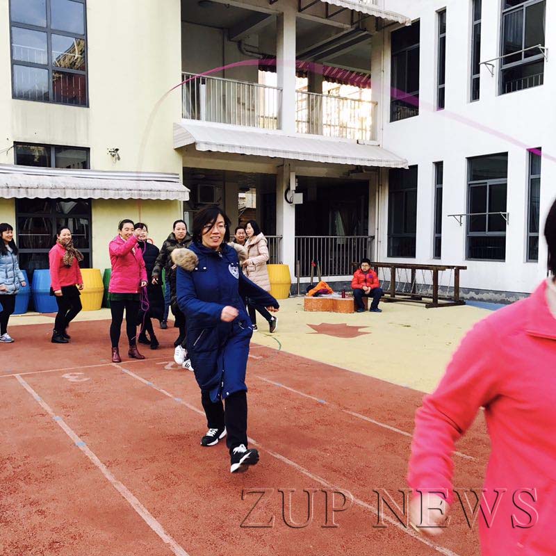 印象最深的还是跳大绳,老师们一跳就露出了“老底”,幼年时期肯定都是跳绳高手!瞧,一个一个鱼贯跳跃着,那画面太美,犹如一条五彩的长龙在幼儿园操场轻舞飞扬,让人看得目不暇接!