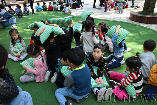 18日上午,所有人员准备就绪,随着一阵急促的警报声,各班教师迅速按紧急预案的疏散线路带领幼儿拿起湿毛巾,捂住口鼻,弯腰扶墙有序地按规定路线到达指定的逃生安全区域。整个疏散现场做到了快速、安全、有序。随着第二次警报声响起,孩子们头顶小枕头,在班级老师的带领下,迅速有序地按照地震逃生路线撤离疏散,整个过程用时5分钟,全体幼儿在老师的带领下安全撤离,无人员受伤,没有出现碰撞和踩踏事件,演练达到了预期的效果。