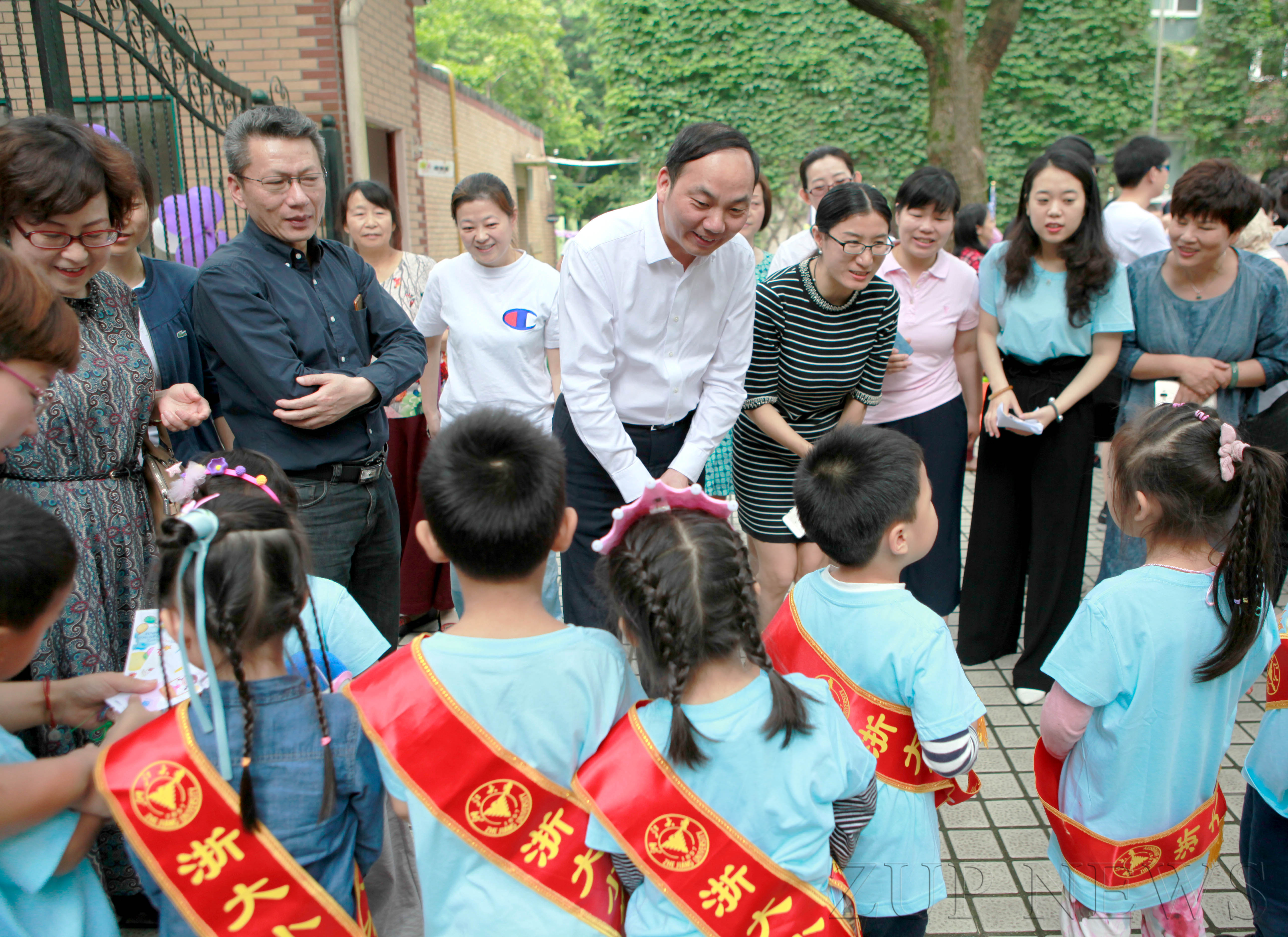 6月1日,后勤集团总经理林旭昌、后勤集团党委书记万春根一行在幼教中心主任周熔、幼教中心党总支书记王勍的带领下来到华家池子弟小学,华家池、西溪、玉泉和实验园,向孩子们送上节日祝福,给老师们带来最诚挚的祝福。