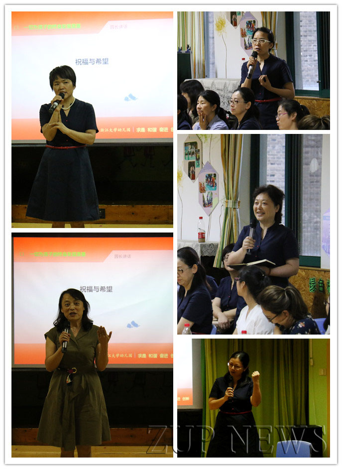 在新员工们进行了庄严的入职宣誓之后,幼教中心党总支王勍书记代表中心对新员工教师们提出了新希望,在感动于浙大幼教大家庭温暖的同时,从分享两个小故事出发激励大家“成功就要接受磨炼”、“坚守信念就有希望”,并鼓励大家做一名幸福的浙大幼教人。