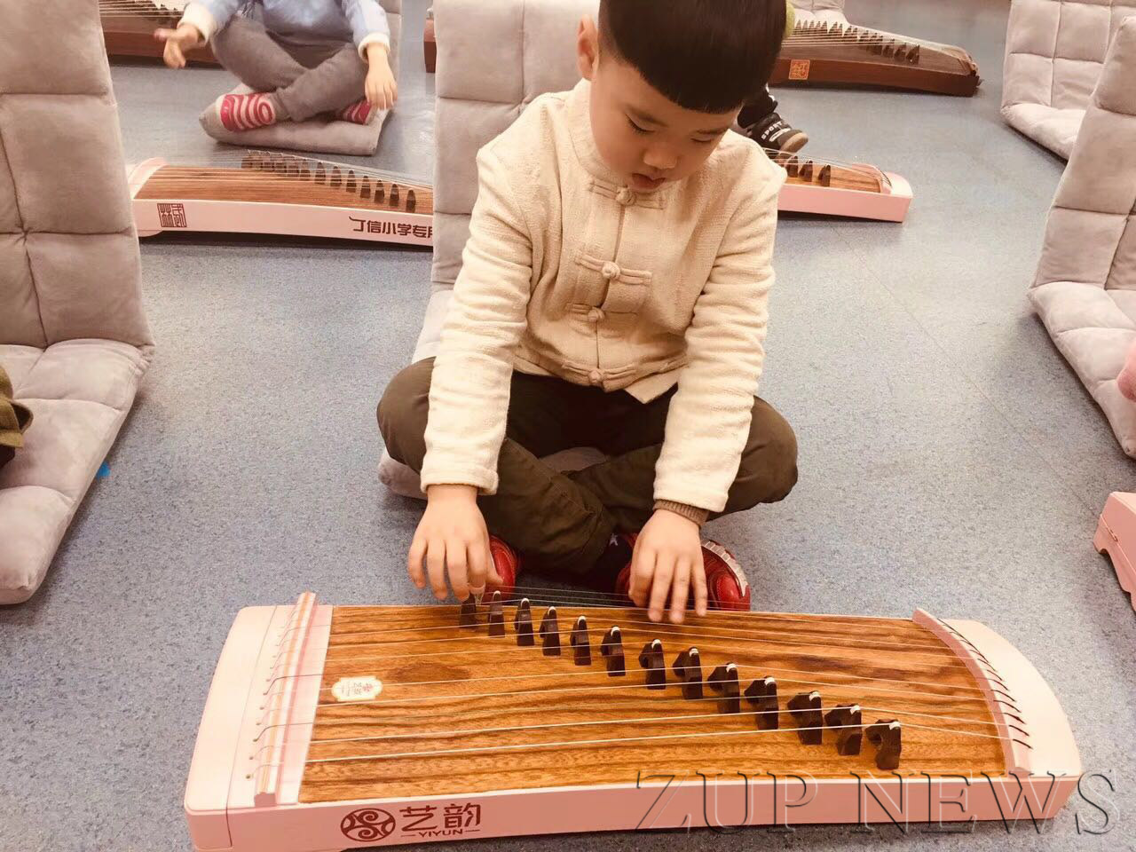 1月2日,华家池分园的老师们邀请到了杭州天筝馆的老师,带着小朋友体验了“古筝习礼”音乐互动活动。孩子们有序进场,开始了一场不一样的音乐互动课体验。