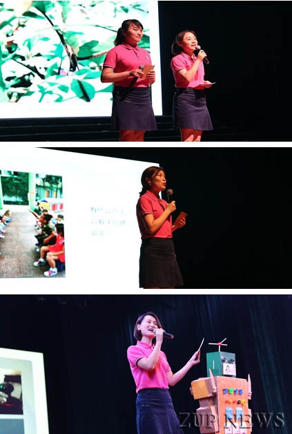 会上,老师和孩子一起讲述了三个课程故事,以此让新生家长对幼儿园的课程有更清晰的认识,同时也希望给家长有所启迪。观察西瓜虫,在愉快的玩耍中探索大自然的奥秘;探索防晒方法,在不断的发现和解决问题中激发创新思维;制作机器人,在充分的“浙”里资源中培养探索和质疑精神。生动的课程游戏锻炼着孩子们认真钻研的“学术精神”,坚守孩子们的“儿童立场”,让每个孩子都能成为更好的自己。