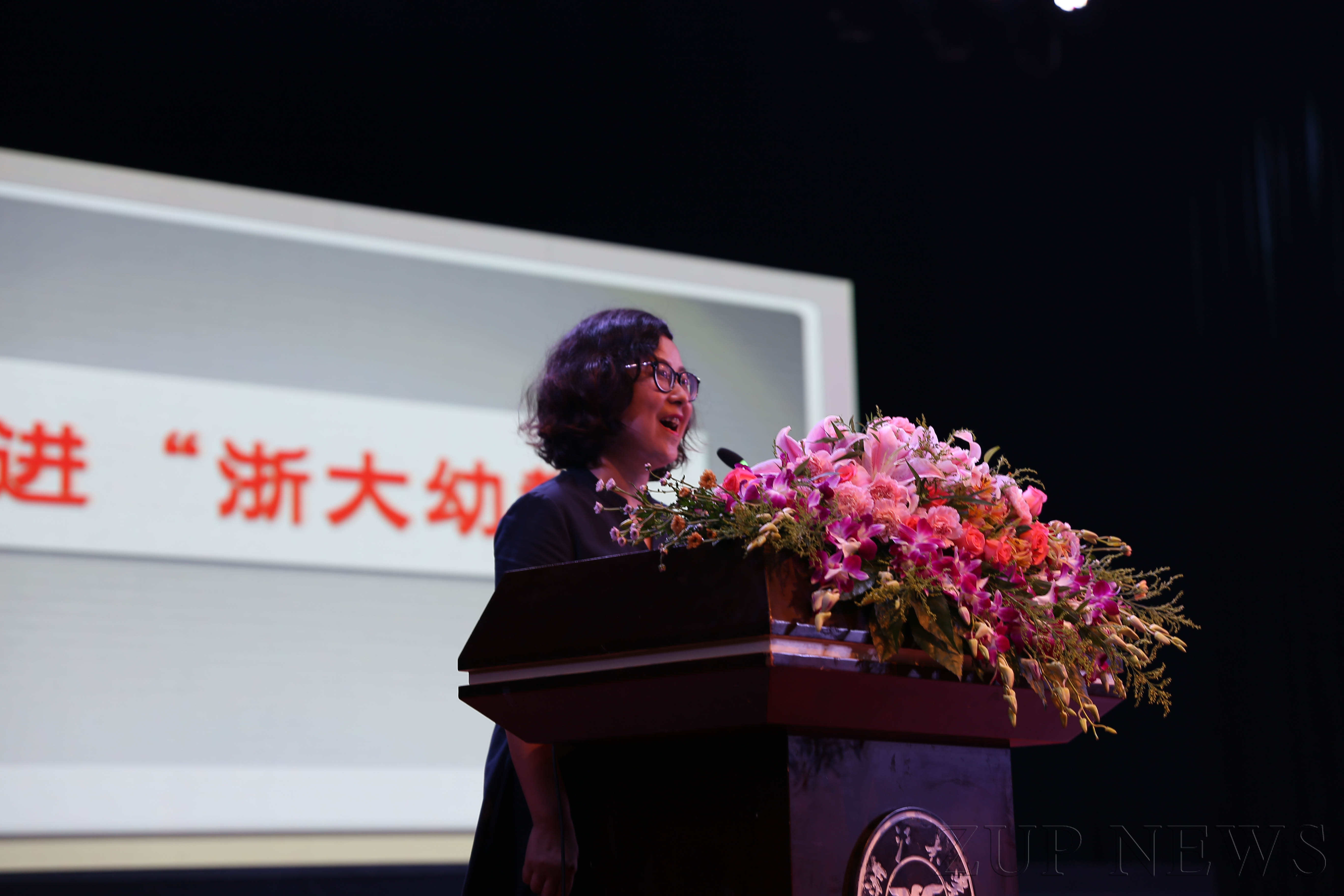 幼教中心主任周熔代表中心对各级领导的到来表示热烈的欢迎和诚挚的感谢。她向家长们介绍了浙大幼儿园的概况,浙大幼教始终秉持着“为孩子的终身发展奠基”的办园宗旨,以“以生活体验为源、以游戏探究为伴、以终身发展为本”为办学理念,致力于为孩子创建一个安全、好玩、互动、有趣、有序的教育环境,并对浙大幼教的“1+X”课程模式以及“学术月”的设置进行了介绍,充分利用浙大资源开发的“求是趣学堂”课程和推动教师专业成长的“学术月”平台,是浙大幼教加强内涵发展中的重点建设项目。“浙大幼教”倡导“我是儿童研究者”、“ 做一名有思考力的教师”,让教师成为探索幼儿之路做新时代的追梦人,用情怀陪伴孩子的成长,用爱的歌声做孩子成长的引路人。