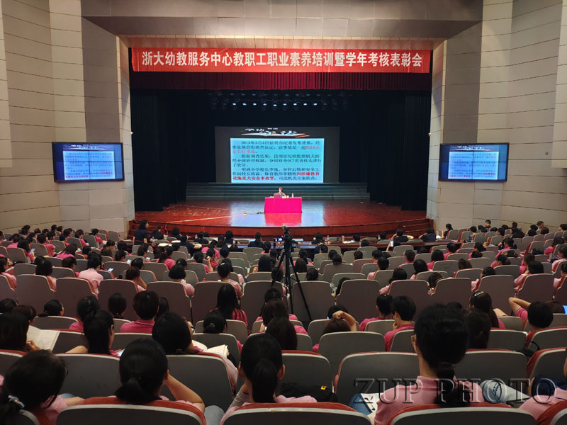 2019年8月26日上午,幼教中心在浙江大学玉泉校区永谦活动中心小剧场召开新学年教职工职业素养培训暨2018学年考核表彰会。