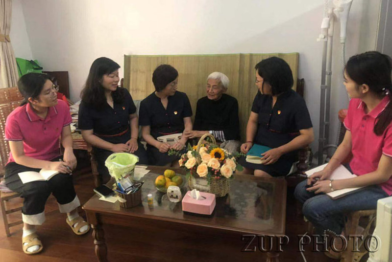 9月19日,玉泉分园副园长汤雪琴、党支部副书记梁冰、团支部书记朱子晴与实验园党支部书记鲍玲玲、幼教中心团总支书记王腾等一行六人共同拜访了近90岁高龄的老党员周玉芳园长,表达了后勤集团对退休教职工的亲切问候,送去党团组织的关怀和温暖。