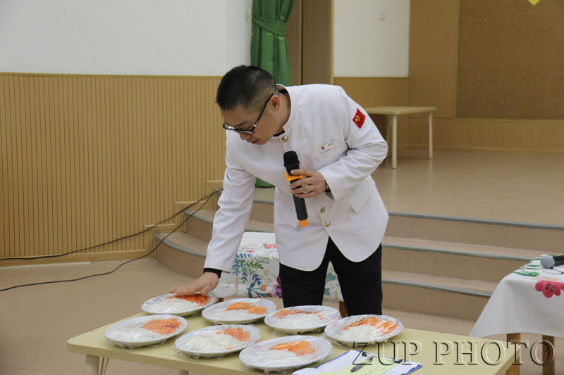 本次比武主要分为团队风采展示、团队知识竞答与个人技能比拼三大板块。三句半、杯子歌、舞蹈、走秀、对唱,各分园精彩的展示引得台下阵阵掌声。知识竞答环节更是激烈非常,参赛者专业、全面、透彻地回答了安全制度、护理常识、保育操作、垃圾分类等问题,体现了能“舞”又能文的浙大幼教后勤队伍特质。刀工比赛中,各分园厨师熟练地操作着菜刀,均匀恰当的萝卜丝、片不一会儿就出现在了案板上。保育员所比拼的餐前消毒与呕吐物处理,不仅体现了浙大幼教保养工作的专业性和规范性,汤雪琴医生在此间的点评也让大家学习到了不少日常保教中的卫生知识。随后,现场烧制的各色菜肴于糕点被呈现在大家眼前,色、香、味、型、意、气、养俱全的作品让金种平大厨也不禁称赞“这是优秀的后勤团队。”经金种平与评委们的仔细评判与打分,秉着公正公开的原则,最终现场评出了三个风采奖、两个合作奖和两个创新奖,以鼓励这群年复一年、日复一日为孩子健康成长默默奉献的人。