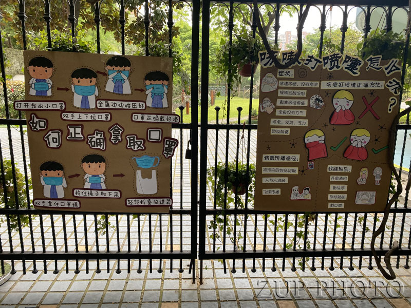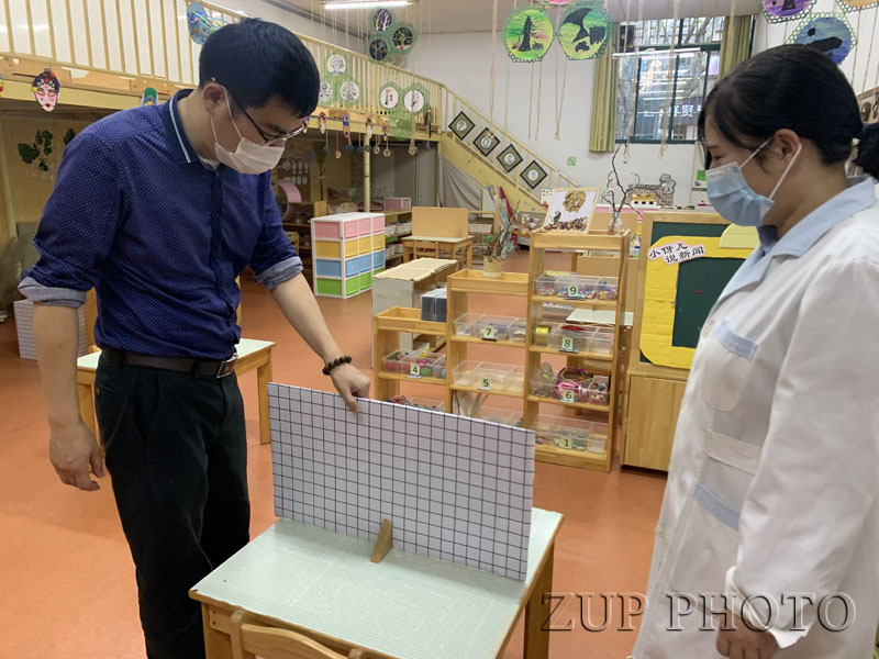 华家池分园、西溪分园分别于4月27日、28日迎接了江干区、西湖区验收小组的督查指导。验收小组对照《学校线下开学复课卫生防疫工作自查核验表》51项指标细则逐一进行实地查看,包括入离园流程、防控设施设备、台账等。华家池分园自制的入、离园演示视频方便有效,有助于家长快速清晰地了解流程,得到了验收小组的肯定。废旧KT板加上积木或其他一些小零件就变成了临时隔离板,既能在就餐时有效对幼儿进行分隔,也能稍加利用变成游戏材料,西溪分园老师们的智慧与细致让开学准备工作更显暖心。