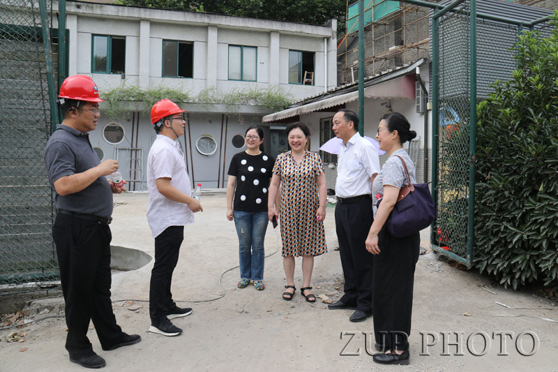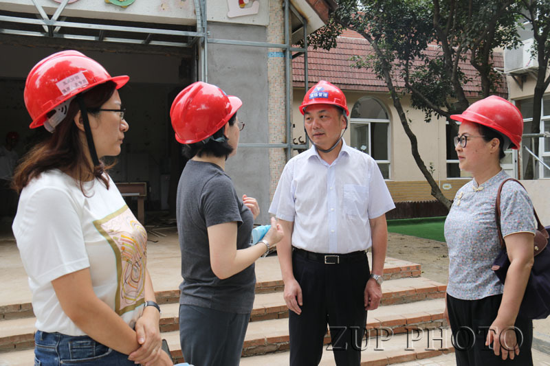 8月5日、6日上午,后勤集团总经理林旭昌、党委书记万春根深入幼儿园园舍改造工程施工现场,分别对玉泉、实验、西溪、华家池四个分园改造工程的施工、安全和进度等进行了检查指导。