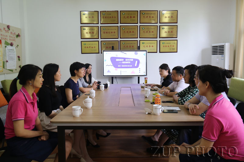 浙大一院工会办何江娟主任等一行四人首先向幼教中心主任周熔献上了节日的花束,对浙大幼教为医院职工解决后顾之忧表示衷心的感谢。在之后的交流中,后勤集团党委副书记姜群瑛表示,浙大一院作为浙江大学的部门之一,在社会发展和此次抗疫中都发挥着重要的作用,后勤集团会全力做好优质高效的服务,为浙大一院提供坚实可靠的支撑保障。同时,姜书记还强调,园院携手后的更多连接交流会形成“圆满”的合作共建模式。幼教中心主任周熔也表示,浙大幼教期待与浙大一院有更多的互通来往,将继续做好优质的学前教育,为浙大人排忧解难,打造求是小雏鹰展翅园地。