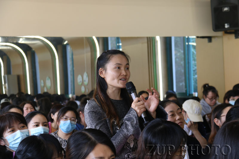 沈颖洁老师认为环境是学前教育中非常重要的基本元素,会潜移默化影响生活在其中的每一位孩子和老师。因此,她首先鼓励老师们听听孩子们的表达,听听孩子们对环境有何种期待,发现儿童的需求并与其共同建构属于他们的环境。接着,沈老师带领大家从各类幼儿园环境创设案例中观察当下的做法,发现越来越清新、雅致、重质感、有格调的环境背后有着尊重谨慎、留白克制的价值观,越来越丰富、多元、重收纳、有情趣的材料助力儿童持续发挥感染力,在动态互动中滋养出生命力和创造力。与此同时,儿童的作品、儿童的表达也越来越多的被重视和彰显,其背后的观念演变是对儿童精神生命的关照、对儿童文化和自然本性的保护、对儿童创造性思维的呵护以及对儿童未来品质生活的一种准备。在转变儿童观、支持儿童学习的过程中,沈颖洁老师点明了空间变革、支持儿童表达等努力方向。报告结束后,沈颖洁还与在场教师进行了“如何在环境创设中呈现小年龄段儿童表达”“区域材料更丰富而幼儿创作变化减少”等问题的交流探讨。此次报告带给了浙大幼教人新的视角与理念,在场教师纷纷表示受益良多。