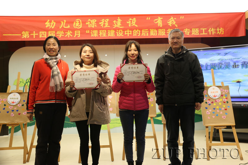 在共同回顾上届学术月“后勤队伍专业技能比武”活动精彩集锦后,经大众投票和专家投票,评委现场为西溪分园、玉泉分园颁发“课程助力全能奖”,其余分园则分别获得“课程助力创新奖”“课程助力成长奖”。