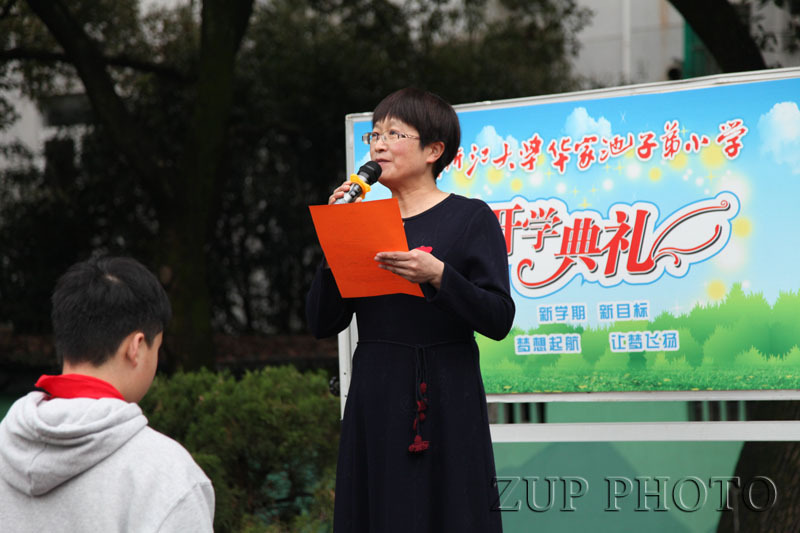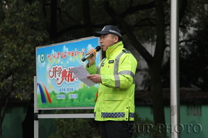 伴随着雄壮的国歌声,五星红旗冉冉升起,拉开了开学典礼的序幕。校长楼金青为大家送上了新学期寄语,期望老师们团结勤奋、进取创新,期望同学们保持优良学风,养成良好的学习、行为、生活习惯,创设文明有序的环境,争当健康向上的华小少年。之后,江干区交警大队采荷中队的周宇警官结合具体案例进行了生动的安全知识宣传,让全体师生了解了生命的可贵,同时也掌握了有关交通安全知识,增强了安全意识。