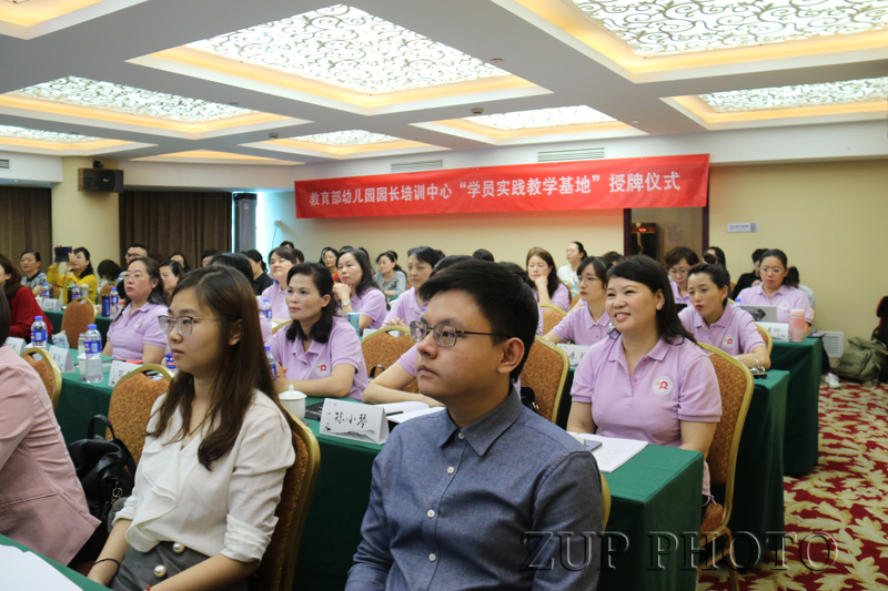 5月13日上午,教育部幼儿园园长培训中心“学员实践教学基地”授牌仪式在浙江圆正·灵峰山庄报告厅隆重举行。教育部园长培训中心第六期、第七期全国幼儿园优秀园长高级研究班共67名园长以及浙江大学幼儿园领导班子、各部门负责人、教师代表、媒体记者等80余人参加了活动,活动由第七期全国幼儿园优秀园长高级研究班班主任温佳玉主持。