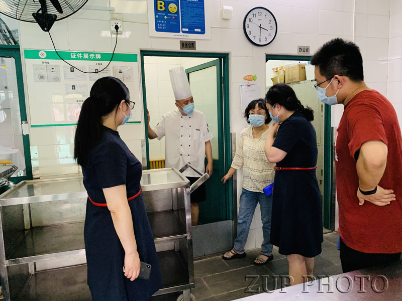 督查组首先对各分园开学准备工作做了全面了解,并根据《幼儿园开学验收内容与标准》分别对防疫物资储备、校门口设施设备、临时隔离室标准配备、全园清洁消毒、校园安全管理等方面内容进行了实地验收,仔细检查了“两案九制”完善、师生摸排准备、教育教学准备、培训和实地演练等工作及相关台账,在临时隔离室查看物资配置和规范要求的落实情况。同时,为有效防范和杜绝食品安全事件的发生,切实保障师幼饮食安全,督查组还走进了园区食品操作间、贮藏室等重点区域,询问疫情期间食堂防疫物资储备及人员日常健康检测等情况。