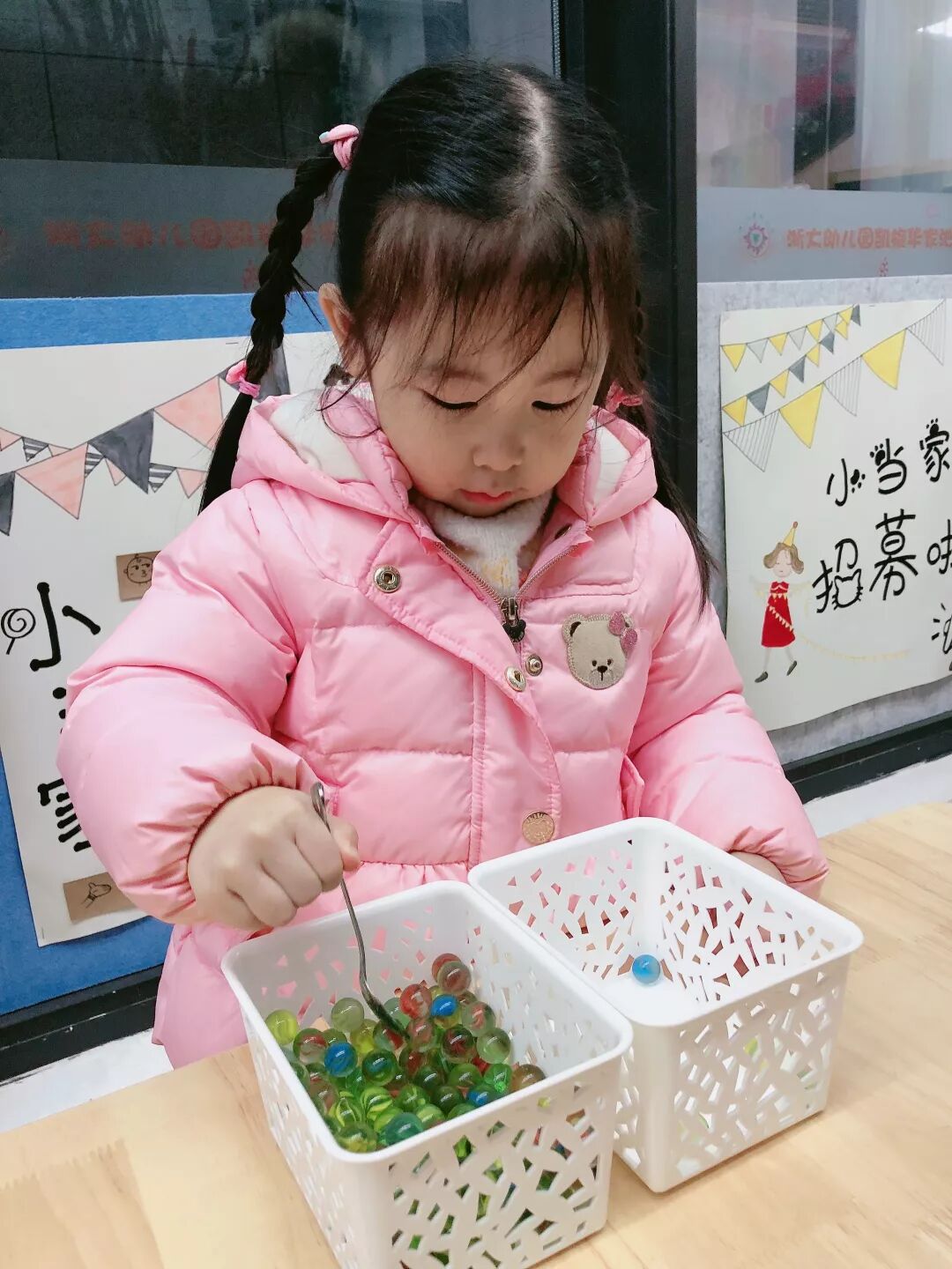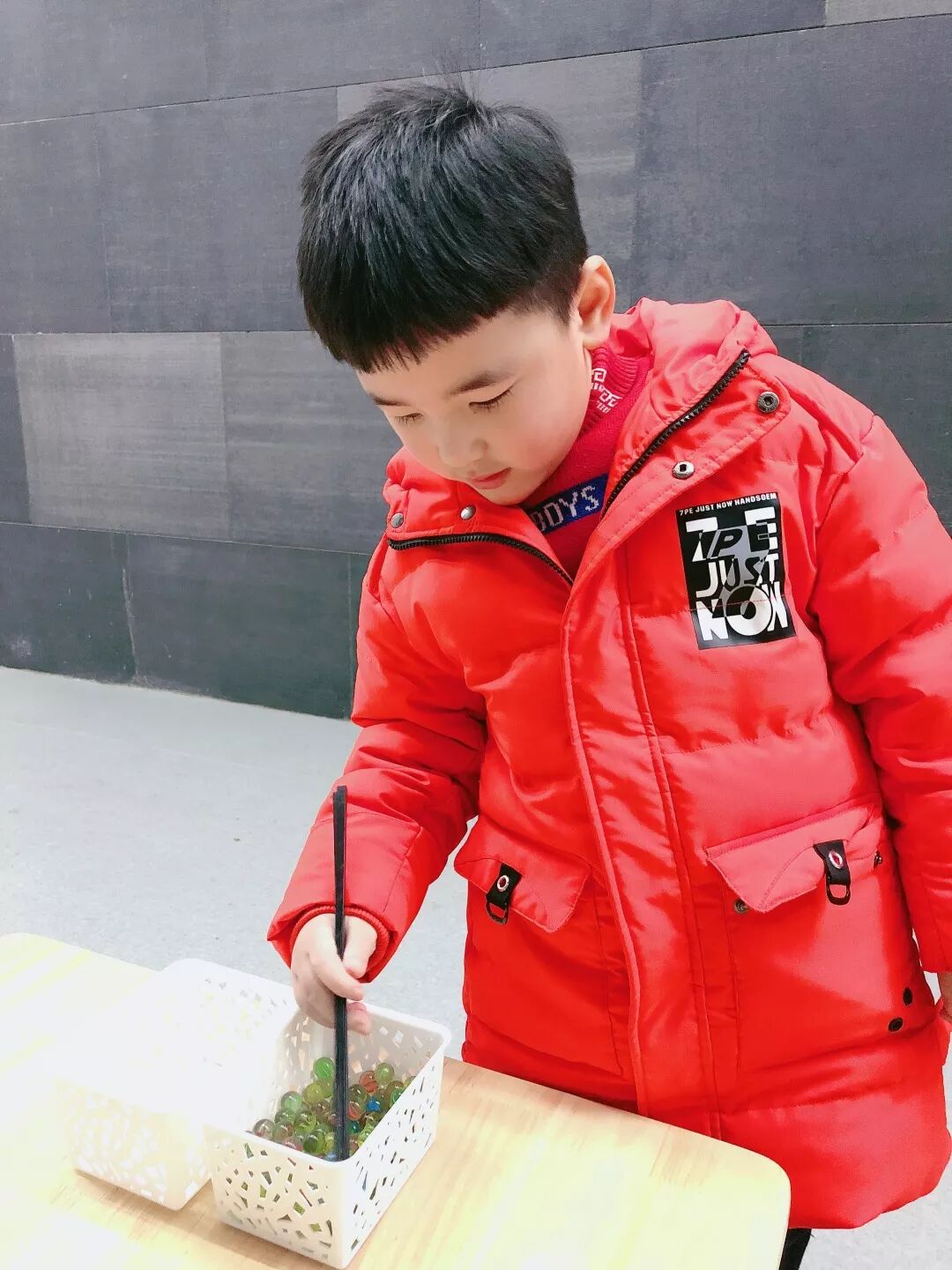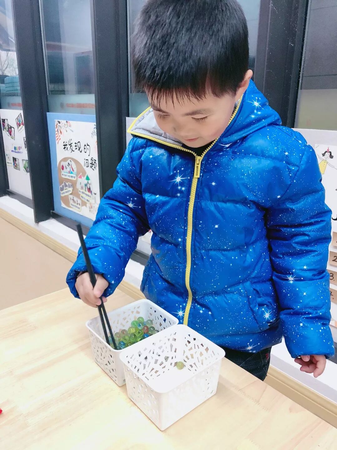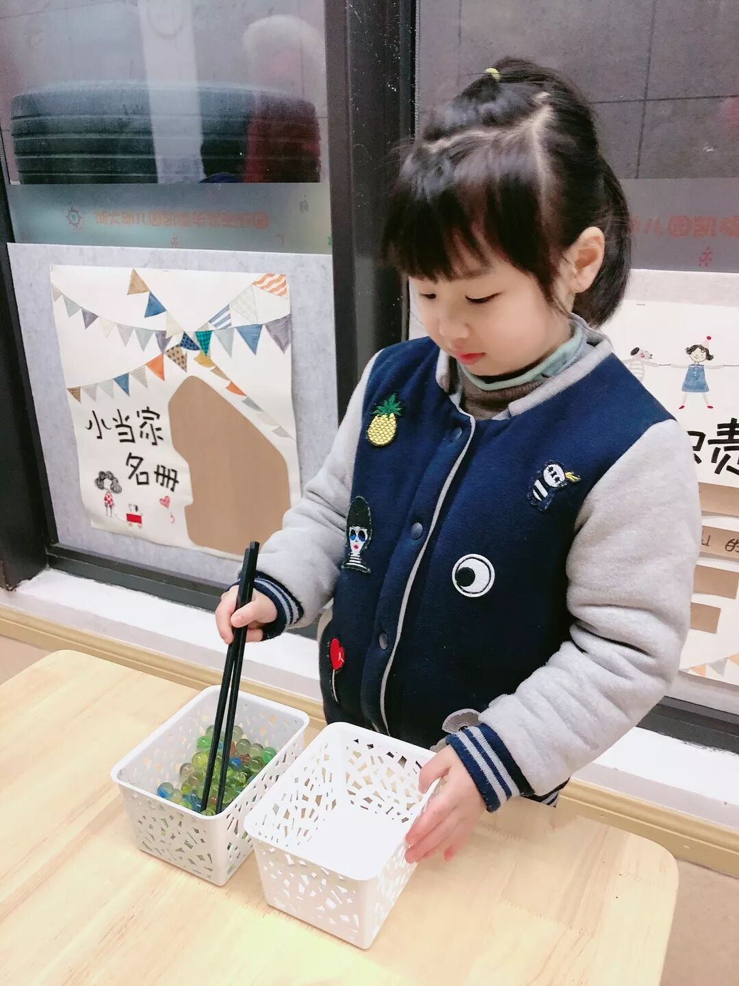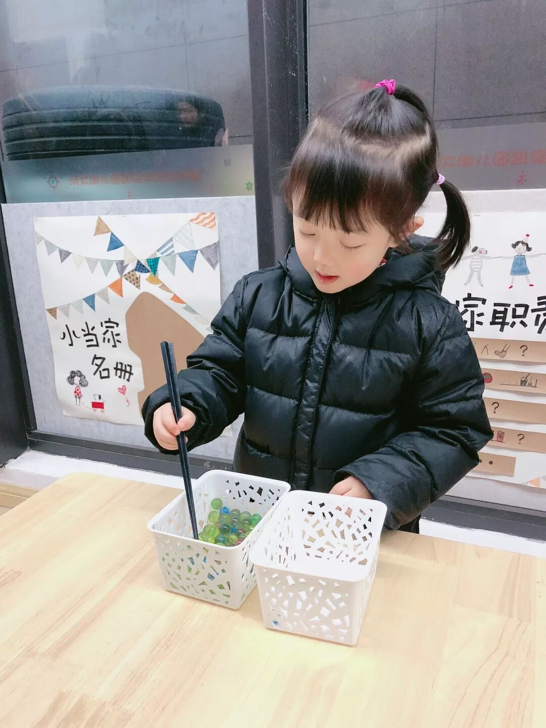 小班孩子也勇于挑战筷子夹弹珠,你可是比老师我还强!